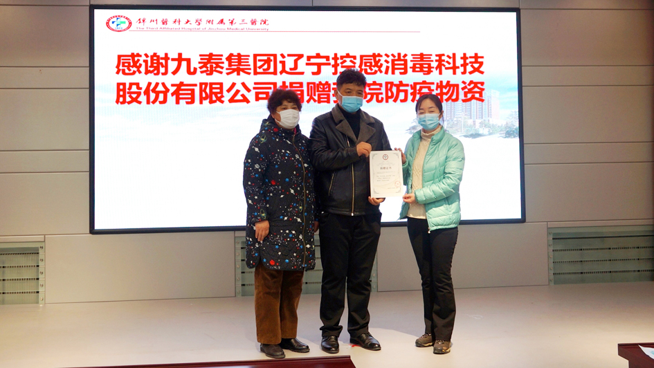 2月11日、25日,錦州九泰集團積極踐行企業(yè)社會責(zé)任,向錦州醫(yī)科大學(xué)附屬一院和附屬三院開展愛心捐贈活動,送去75%乙醇消毒液,有效緩解了新型冠狀病毒疫情防控物資匱乏壓力,發(fā)揮了積極的作用。對打贏新型冠狀病毒疫情阻擊戰(zhàn)提供了物資保障。